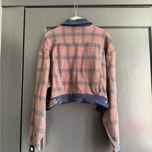 WeWoreWhat Plaid Jean Jacket in Brown and Navy