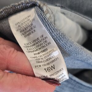 Stylish light blue jeans featuring subtle blue tone on tone floral embroidering. Ideal for everyday wear. Democracy brand. Women size 16w