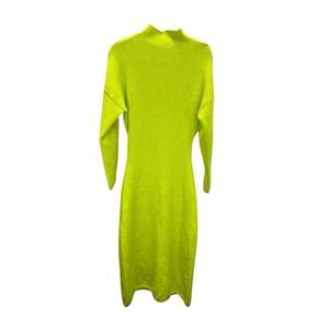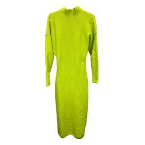 ZARA Neon Green Wool Viscose Blend Knit Midi Dress Long Sleeve Bodycon L