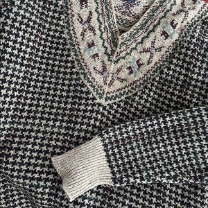 Vintage Polo Ralph Lauren Fair Isle Houndstooth Knit Sweater Wool Silk Linen M