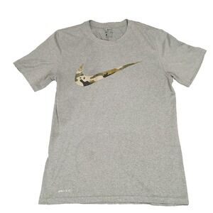Nike Dri Fit Training T Shirt Men's Size M Gray Center Camo Swoosh Short Sleeve