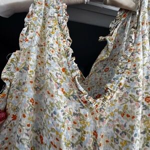 Made from soft, breathable, and naturally sustainable linen, the sun-faded floral fabric is easy to dress up or down. Delicate ruffles at the neckline and a gentle flounce to the hem add romantic notes to the simple, easy-wearing Sapphira. Detail: Pockets, Ruffle at Neckline and Arms Material: 100% Linen Care: Machine wash cold, tumble dry low Imported Style: WDU2062-WFD