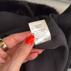 Elegant black coat with faux fur trim. Belted waist for a flattering fit. Perfect for stylish warmth. EUC