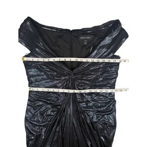 Tadashi Shoji Black Off The Shoulder Ruched Metallic Dress L Gown Gala New