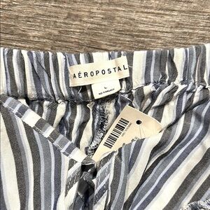Aeropostale Blue/White Striped Twist Front Tie Back Romper NWT Size Large Adjustable spaghetti straps. V-neck. Peak through front. Two front pockets. Open back with adjustable tie detail.