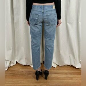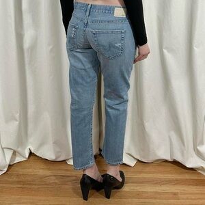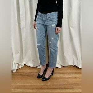 AG Boyfriend Jeans ❧ In a light distressed wash. The ex-boyfriend slim style. Ankle crop relaxed fit. Great pre loved vintage condition.