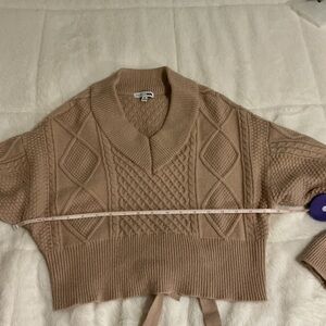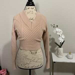 Stay cozy and stylish with this elegant pink cable knit sweater. Perfect for any occasion, this sweater offers both comfort and fashion.