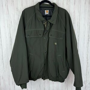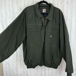 Carhartt Green Canvas Bomber jacket LIKE NEW. Worn once. Great quality! Thick and durable. Unsure of size so please review measurements below