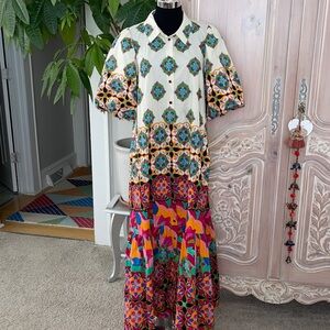 By Anthropologie Mixed Print Buttondown Maxi Dress