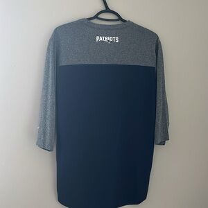 New England Patriots long sleeve shirt is in great condition sized Medium it has a pouch on your left chest and has 3 buttons. pit to pit is 20 3/8 inches top to bottom is 30 inches and long sleeve length is 16 inches
