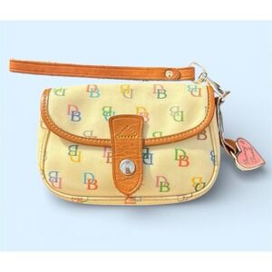Dooney And Bourke Y2K Vintage Monogram Wristlet Yellow Snap Close Heart Charm