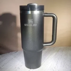 Stylish black mug with a comfortable handle. Perfect for on-the-go use.Stanley Quencher H2.0 FlowState Tumbler, also known as a Stanley Adventure Quencher Travel Tumbler. Pre- Owned in Great Condition. Please See Pictures to See Exact Tumbler and Condition. Some Minor Scratches to Body Of Tumbler.30 oz. No Straw. SKU# A476