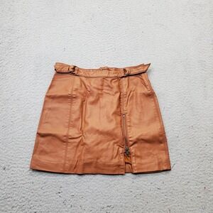 Free People Faux Leather Mini Skirt Women's 0 Tan Lined Midnight Magic Zip Slit.