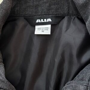 ALIA Black Denim Twill Embroidered Floral Zip-Up Vest Utilitarian Cottagecore