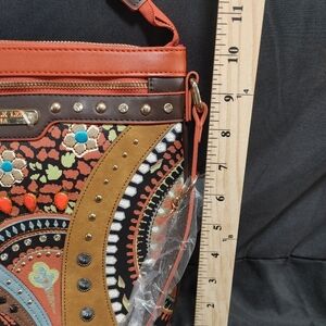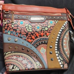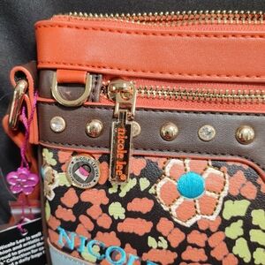 Nicole Lee Artistic Crossbody Bag with Orange and Brown Accents