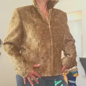 Womens Giancarlo Ferrari Vintage GOLD Jacket GYPSY Festival BOHO lined Zip