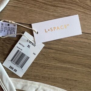 Experience comfort and style with this elegant white and tan bikini top. L*Space NWT, is sold out online and retails for $88