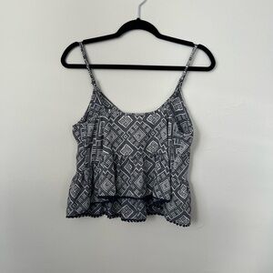Lush Flowy/Ruffled Cropped Adjustable Printed Tank Top - Small in Blue & White