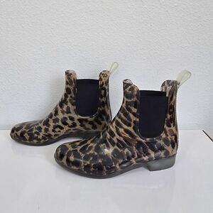 J. Crew Leopard Animal Print Chelsea Rain Boots Women's 6