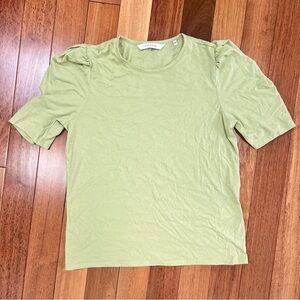 Rebecca Taylor Puff Sleeve A-line T-shirt in the color green size S. 17" PTP, can fit a medium. 50% cotton 50% polyester.