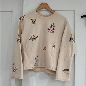 Madewell Botanical Embroidered Bell-Sleeve Sweatshirt Women's Size Small