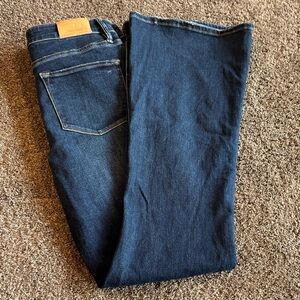 Stylish dark blue jeans with a flattering flare. Perfect for any occasion.