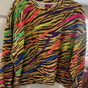 QUEEN OF SPARKLES colorful zebra stripe sweater