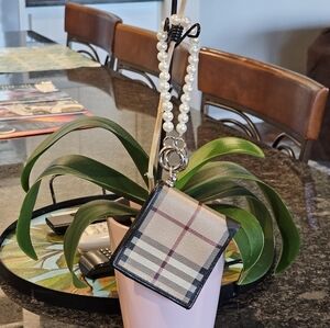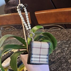 Burberry Black Nova Check Bifold Wallet wWristlet & Patch Added