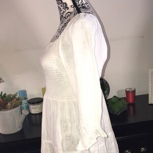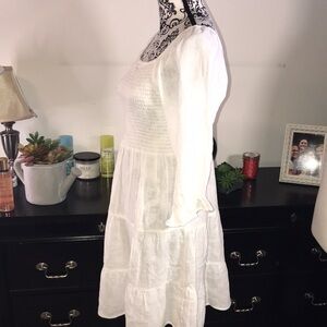NWT!! J Gee Ruffled White Tiered Midi Sundress with Bishop Sleeves Size Small