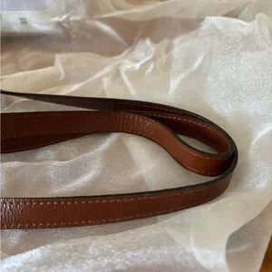 Elegant brown leather shoulder bag. Features gold-tone studs and hardware. Classic and versatile design.