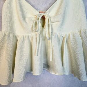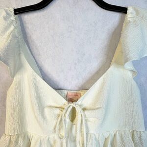 Urban Outfitters Sierra Keyhole Blouse Womens Small Ivory Y2K Babydoll Crop