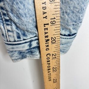 Features: Long sleeve, Button front, Collared, Pockets, Light Wash, Blue Jean, Acid wash