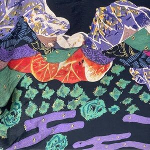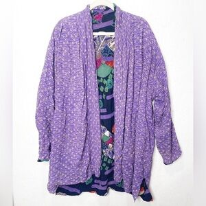 VTG M Polo Tsuru Rayon Kimono Women’s One Size Purple Black Floral Reversible