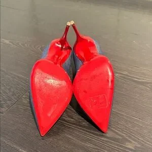 STUNNING and unique denim blue heels by Christian Louboutin in Like New Conditions. Sleek design with signature red soles that are protected to prevent damage.