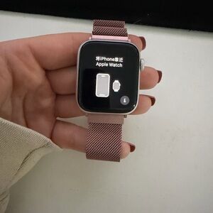Stylish Apple smartwatch with a pink band. Ideal for fitness tracking and connectivity.