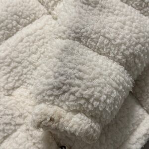 Cozy off white Sherpa bomber in good used condition. Only sign of wear is some discoloration on back of one arm. May come out with dry cleaning!