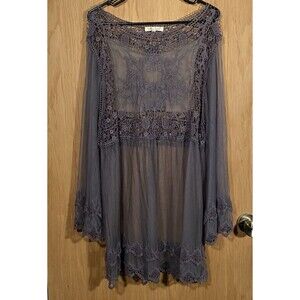 Indigo Soul Women's Sz Lg Sheer Lace Babydoll Top Gray WhimsiGoth FairyGrunge. Condition is Pre-Owned. Top is in excellent pre-owned condition with no cosmetic flaws or runs in material. Size Large. Please see all pictures for measurements and ask any questions before purchase. Item is stored in a clean smoke free environment. Thank you so much for shopping my Closet:) I do offer 15% off 2 or more items, so if you see a couple items make a bundle and make a deal:) New items added weekly:)