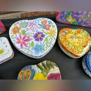 Brighton Empty Metal Tins Assorted Shapes And Sizes Lot Of 9 Various Uses/Colors