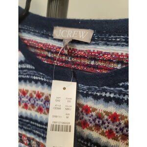 The J.Crew Fair Isle Lady Jacket in a Boiled Wool Blend is a stylish and comfortable sweater in a multicolor grey pattern. Made from a wool blend knit fabric, this sweater features a crew neck and long sleeves, making it perfect for a chilly day. The J.Crew brand ensures high quality and timeless style, while the hand wash only care instruction ensures this sweater will stay looking new for years to come. The regular fit and medium size make it a versatile piece for any woman's wardrobe.
