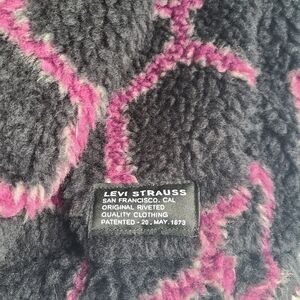 NWT Levis Rlaxed Fit Pink and Black Fleece Quarter Zip Pullover in Size XS