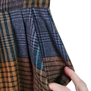 Claude Vintage A-Line Pleated Multicolored Plaid Wool Blend Midi Skirt Size 9/10