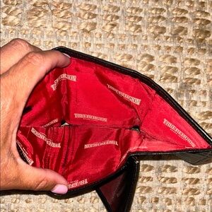 True Religion Black Key Card Holder with Horseshoe Emblem-tri-fold