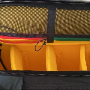Velcro removable inserts allow for changing layout of interior space. Lots of great pockets and storage.