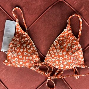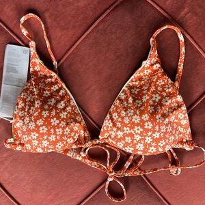 Billabong Reversible Floral Triangle Bikini Top Orange Daisy Retro Print Size S