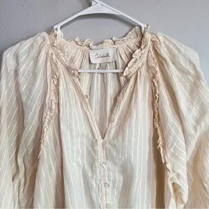 Cleobella Ari Blouse Peasant Top in Ivory with Gold sparkle S