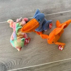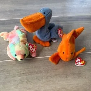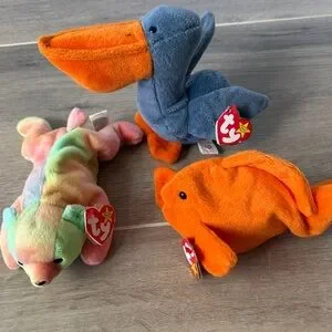 Ty Beanie Baby’s Goldie, Scoops, and Sammy.