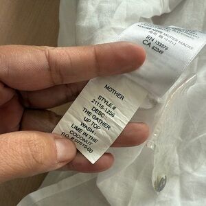 MOTHER The Gather It Up Front Button Embroidered White Top Women’s Size XL