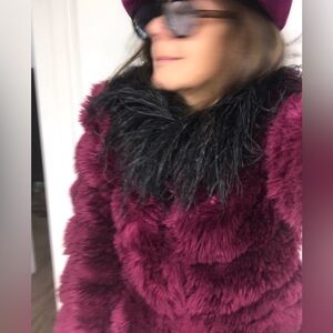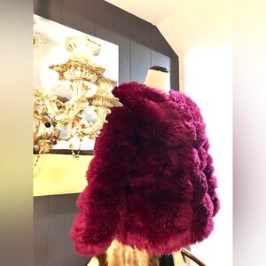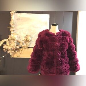 This stylish plush faux Fur fuchsia jacket is perfect for any occasion.