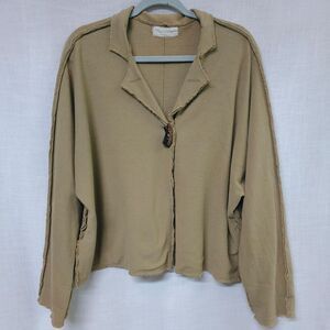 Eleven Stitch Design Beige Oversized Cotton Toggle Caridigan Sweater