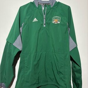 Sleek green Ohio University Bobcats warmup windbreaker by Adidas. Ideal for outdoor activities. Lightweight and stylish.
